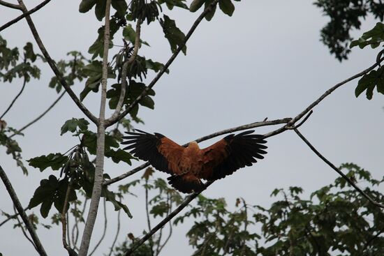 Ich weiss, Davis möchte uns gern verschiedene Tiere zeigen, doch in der Regenzeit ist das relativ schwierig. Nur die Vögel leben ihr normales Leben weiter, andere Tiere ziehen sich dann zurück. Wenn dann aber der Pegel des Wassers ganz hoch ist, dann kann man plötzlich wieder mehr Tiere finden, weil sie sich dann in den Schutz der Bäume zurückziehen müssen und nicht am Boden bleiben können.