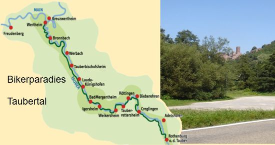 Nun ging es weiter durch Tauberbischofsheim ins wunderschöne Taubertal. Die Straße folgte den Mäandern des Flüsschens und eine mutige Truppe von unerschrockenen Simson Enthusiasten düste mit konstant 60 km/h die kurvige Strecke entlang.