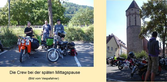In Wertheim machten wir kurz rast an einem Parkplatz an dem auch der Vespafahrer anhielt. Ich sagte zu Ihm freundlich: "Da musst Du noch mal bei"!