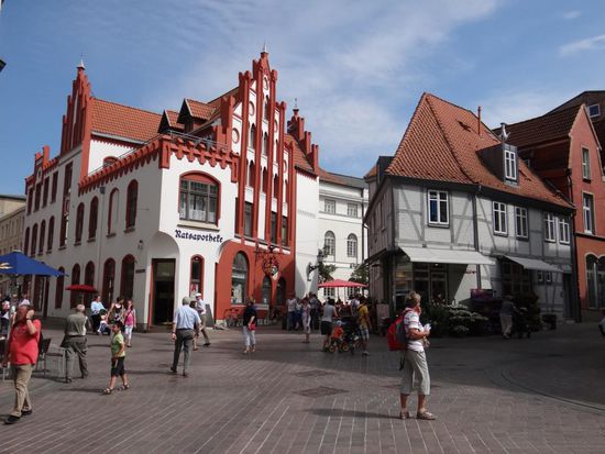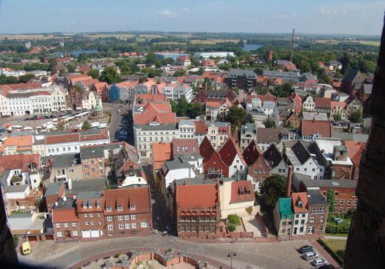 Über Lübeck fahren wir nach Wismar, der traditionsreichen Hansestadt an der Ostseeküste. Auf dem Wohnmobilpark Westhafen (GPS B 53,89438, L 11,45155) finden wir einen Übernachtungsplatz. Zu Fuss erkunden wir die historische Altstadt, welche seit 2002 zum Welterbe der UNESCO gehört. Wismar besitzt mit 76 Hektar einer der grössten Altstädte und ist ein Flächendenkmal für mittelalterliche Bau- und Lebensweise par excellence. Besonders beeindruckend sind die 5 Backsteinkirchen und die vielen hübschen Giebelhäuser. Vom 81 m hohen Marienkirchturm geniessen wir eine wunderschöne Aussicht über die Stadt und den Hafen. In einer Kirche lesen wir einen passenden Spruch für unsere Reise.