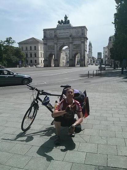 Ein in der Nähe stehender, nicht eiliger Passant wurde auch gleich als Fotograf dieses besonderen Moments engagiert, so daß die Weiterfahrt zügig vonstatten gehen konnte. Es waren ja noch ca. 40 km zu absolvieren, aber zeitlich, da es erst 15:00 war, keine besondere Eile geboten. Nur der Wetterlage vom Westen her wollte ich schon seit Pasing kein uneingeschränktes Vertrauen mehr schenken.