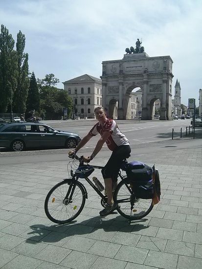Von Maisach ging's dann recht flott über Olching, Gröbenzell und Lochhausen zum Bahnhofsvorplatz von München-Pasing, wo ich mich mit Rosa, der Frau meines verstorbenen Firmpaten Theo, nach telefonischer Vorplanung traf. Da sie auf dem Weg zu einem Ausflug war, wäre die Zeit zu einem Besuch in ihrer Wohnung zu knapp gewesen - deshalb dieser spezielle Kurztreff. Vor sechs Jahren war ich ja mit dem Rad auf Heimreise von Paris am frühen Abend nach Pasing gekommen und hatte bei Rosa ein Quartier für die letzte Nacht nehmen können, das Radl auf dem Balkon "genächtigt".