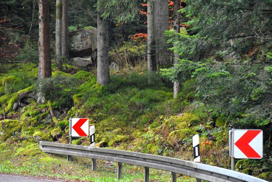 Die dann folgende Strecke ist wunderschön. Berg auf, Berg ab, Serpentinen durch Mischwald. Erstaunlich, dass dieses Jahr noch so viele Blätter an den Bäumen hängen, geht es doch bereits auf Ende November zu.
