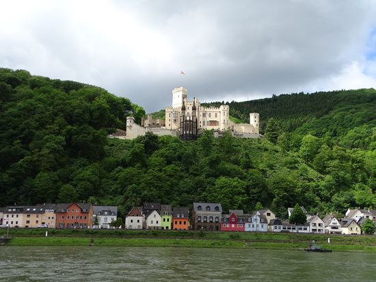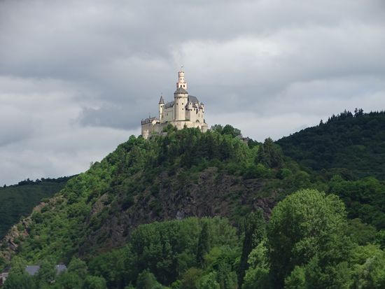 Ablegen um 10:20. Der Himmel sieht dunkel aus, es weht ein starker, böiger Wind, trotzdem kriegen wir den ganzen Tag keinen (!) Tropfen Regen ab. Der Strom wird langsam wieder breiter und wir düsen noch an einigen Burgen vorbei. Viel Gegenverkehr, Flussabwärts sind wohl nur wir unterwegs.