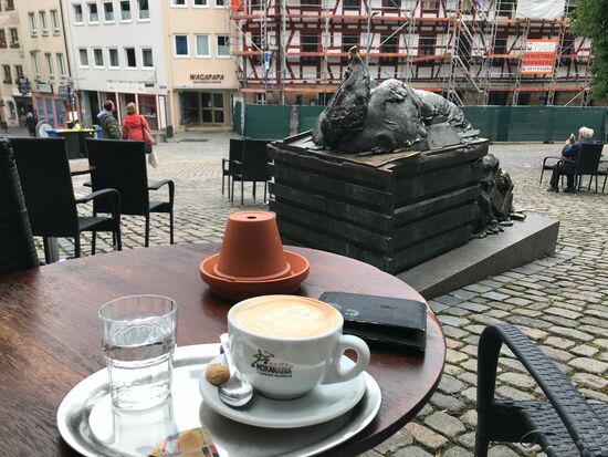 Ich mache einen kurzen Rundgang, um beim Barfüßer eine Kleinigkeit zu essen, aber der hat Coronabedingt erst gar nicht aufgemacht. Schade, aber zum Glück finde ich eine Alternative und genieße in einer alten Kneipe ein leckeres M Mittagessen und ein Trostbier wegen dem Wetter.