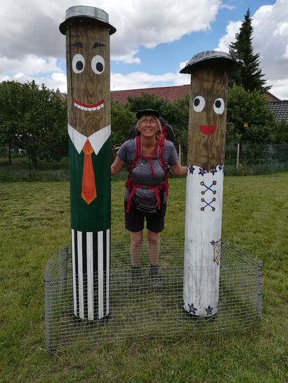 Auf dem Platz vor dem Dom sehen wir die erste Jakobsmuschel am heutigen Tag und wie jeden Tag lasse ich mich damit ablichten - ist halt ein Ritual