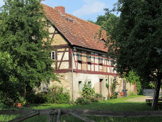 Der Bauernhof der Familie Wirtschas ist seit 1713 in Familiebesitz. Nach dem zweiten Weltkrieg wurden auch ihre Ländereien zu einer LPG zusammen gefasst. Jetzt ist es aber wieder alles in ihrem Besitz. Einen Teil der Gebäude "vermieten" sie seit 2014 als Zimmer an Pilger. Die Zimmer sind im Stil der 1920 er Jahre eingerichtet. Bettzeug gibt es nicht. Wir sind somit in unseren Hütten Schlafsack gekrochen. Dafür gibt es aber eine Küche, Bad und Wohnzimmer.