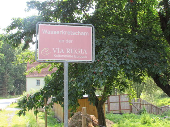 Die Sonne scheint, die Luft ist angenehm kühl und der Hahn kräht. Es ist noch früh am Morgen und Frau König, eine nette ältere Frau hat uns ein leckeres Frühstück bereitet. Sie setzt sich zu uns und erzählt uns von Früher, als sie und ihr Mann noch in der LPG gearbeitet haben. Man wurschtelte sich so durch, leicht war es nicht zu DDR Zeiten. Wir dürfen uns ein Brötchen und einen Apfel für den Weg einpacken, was sehr hilfreich ist. Ehe wir starten, tragen wir uns in ihr Gästebuch ein und bekommen einen Stempel in unseren Pilgerausweis.