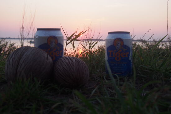Wie sind da, ein schöner Sonnenuntergang, ein leckeres "Tiger" und erst einmal genießen: