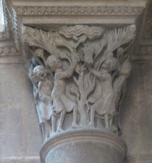 Arkaden mit Steintisch und Kellerabgang in der rue des cloutiers