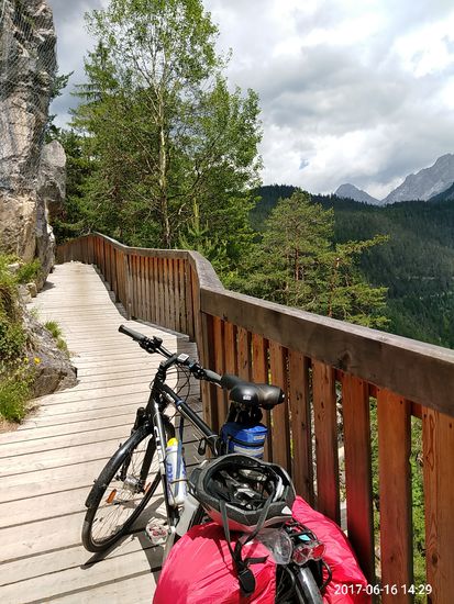 On the road again bzw. auf dem Radweg in Richtung Ehrwald und weil's so schön ist, mit Z-Massiv im Hintergrund.