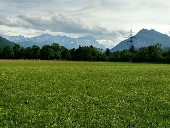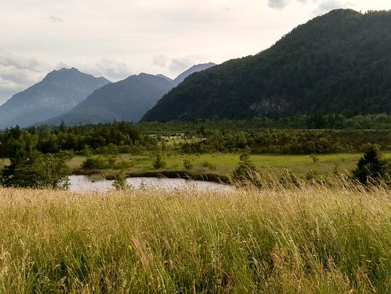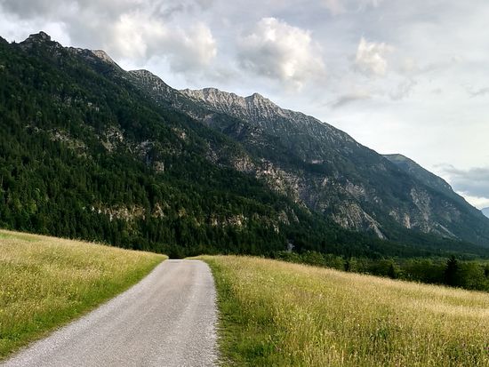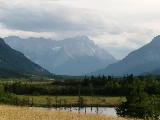 Ein heimischer Feierabendradler, der bis Oberau den gleichen Weg hatte, empfahl mir noch einen etwas erhöhten Aussichtspunkt, von dem man einen umfassenden Überblick über das Loisachtal hatte - hier zurück ins Wettersteingebirge.
