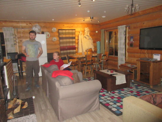 Leider mussten wir an diesem letzten Tag in Saariselkä noch einmal umziehen und zwar in die benachbarte Hütte, welche sich gleich neben unserer bisherigen Unterkunft befand. Grund dafür war, dass unser Gastgeber die große Hütte fälschlicher Weise doppelt belegt hatte uns aber zu versichern versuchte, wir hätten ohnehin nur die kleiner Hütte gebucht und es sei eigentlich ja nur ein Entgegenkommen gewesen, dass wir in der ansonsten leeren großen Hütte schlafen durften. Die Buchungsunterlagen sagten etwas anderes, aber was soll's. So schliefen wir eben den letzten Abend etwas gedrängt, denn gleich am nächsten Tag ging es weiter Richtung Norden.