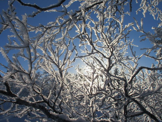Bei Temperaturen jenseits der -10°C gefriert der Schnee an den Bäumen und hinterlässt wunderschöne Eiskristalle.