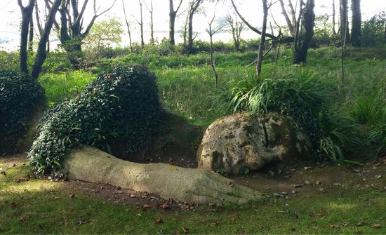 Über matschige Wege über Feld und durch einen Wald erreichen wir die "Lost gardens" durch den Hintereingang.