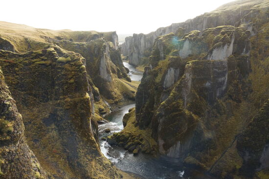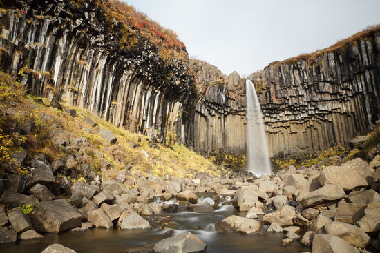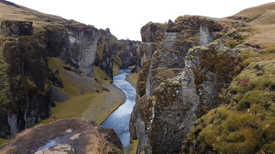 Im Anschluss sind wir zum Skaftafell Nationalpark weitergefahren, um zum Svartifoss zu wandern. Insgesamt waren wir inkl. ausführlicher Fotostopps knapp zwei Stunden unterwegs bis wir wieder beim Auto zurück waren. Diesen Wasserfall haben wir auch endlich mal bei strahlendem Sonnenschein genießen dürfen. Auf dem Weg nach oben kommt man bereits eine einem kleineren, ebenfalls sehenswerten Wasserfall vorbei. Der Weg nach oben war an einigen Stellen schon recht steil und anstrengend aber es gibt ganz gut befestigte Wege. Auf der Weiterfahrt Richtung Vik haben wir noch an der wundervollen Schlucht Fjadrargljufur Halt gemacht. Ein traumhafter Ort, an dem wir ebenfalls gut eine Stunde verbracht haben. Auch hier muss man etwas bergauf laufen, um zur schönsten Stelle der Schlucht mit Blick auf den Wasserfall zu gelangen, aber absolut lohnenswert.