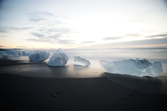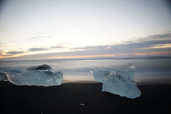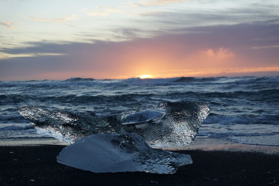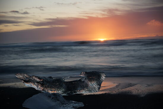 Da für heute besseres Wetter gemeldet wurde, wollten wir die gestern verschobenen Programmpunkte nachholen. Zudem wollte ich total gerne den Sonnenaufgang am Diamond Beach ansehen, deswegen ging der Tag heute schon um halb 7 los. Das frühe Aufstehen hat sich aber gelohnt und wir konnten ein paar tolle Fotos vom Sonnenaufgang knipsen und im Anschluss die ersten Sonnenstrahlen des Tages auf den Jökulsarlon und die Lagune einfangen. Um diese Zeit war auch alles noch so friedlich und es waren kaum Touristen in der Gletscherlagune (am Strand waren hingegen einige um den Sonnenaufgang zu sehen). Am Diamond Beach sollte man übrigens darauf achten die richtige Seite zu erwischen. Auf beiden Seiten der Brücke geht es runter zum Strand, allerdings fanden wir die Seite beim Jökulsarlon (=Ostseite der Brücke) schöner, denn hier hatte man richtigen Wellengang. Auf der anderen Seite der Brücke (Westseite der Brücke mit Großparkplatz) war es auch schön, hier fließt allerdings das Wasser der Gletscherlagune wie ein kleiner Fluss am Strand vorbei, was dazu führt dass man hier keine Meereswellen hat. Um auf die „schönere“ Seite des Strandes zu kommen am besten einfach am Großparkplatz beim Jökulsarlon parken und unter der Brücke Richtung Strand laufen. Wir würden empfehlen beide Seiten mal zu besuchen, wenn man Fotos mit Wellen haben möchte ist aber die Ostseite die bessere.