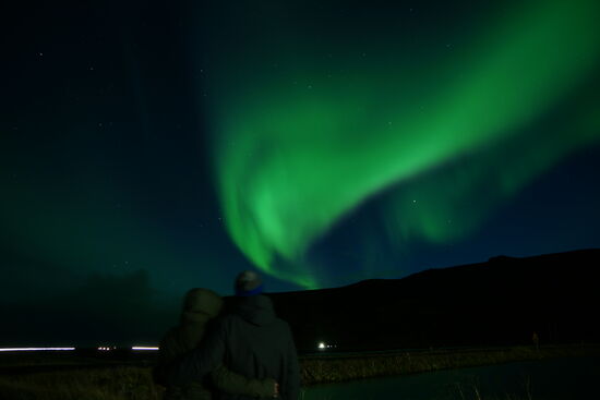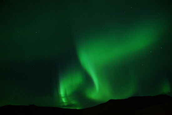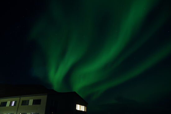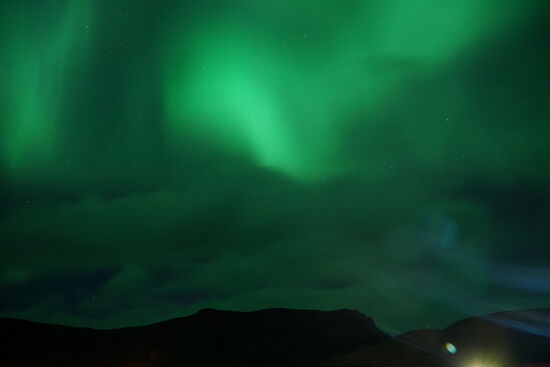 Nach unserer Rückkehr zum Hotel haben wir uns noch eine kleine Pause im hoteleigenen HotPot gegönnt und haben uns auf das angekündigte Himmels-Spektakel (Nordlichter der Stufe 6!) gefreut. Um halb neun war es dann auch schon so weit, Nordlichter wie man sie sich schöner nicht vorstellen kann. Mit bloßem Auge leuchtend grün und sogar rote Ränder zu erkennen. Der absolute Wahnsinn und das wohl Schönste was wir während unseres Urlaubes sehen durften. Das Spektakel hat ca. 30 Minuten gedauert und wir haben danach mitbekommen, dass die Nordlichter so stark waren, dass sie wohl sogar in Norddeutschland sichtbar waren.