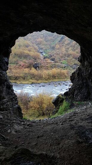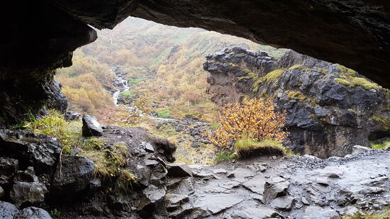 Heute sind wir von Reykjavik aus Richtung Norden gestartet (anstatt des kostenpflichtigen Tunnels haben wir die längere Route über die Straße 47 durch den Hvalfjördur entlang der meterhohen Klippen am malerischen Fjord gewählt. Zum Glymur ist das aber ohnehin der empfohlene Weg – leider war das Wetter bei uns nicht sonderlich einladend für Zwischenstopps und Fotos). Unser erstes Ziel war der Glymur Wasserfall. Wir hatten bereits online recherchiert, dass der Aufstieg zum Wasserfall sehr anspruchsvoll ist und hin und zurück ca. 4 Stunden dauert und auch einige Kletter-Partien enthält. Unter anderem wegen meiner Schwangerschaft hatten wir bereits vorab beschlossen, dass wir spontan und wetterabhängig entscheiden, ob wir diesen Aufstieg wagen oder nicht. Hinfahren wollten wir aber auf jeden Fall. Am Parkplatz angekommen hat uns ein Warnschild die Entscheidung bereits abgenommen. Auf dem Schild stand, dass der Baumstamm, welcher als Brücke über den Fluss dient, um zum Glymur aufzusteigen bereits über den Winter abgebaut wurde. Wir wollten aber dennoch ein Stück wandern und sind deshalb zumindest bis zur Höhle gewandert, was gut machbar war. Der Weg war es Wert, der Blick aus der Höhle war toll und wir waren trotzdem insgesamt ca. 1,5 bis 2 Stunden unterwegs.