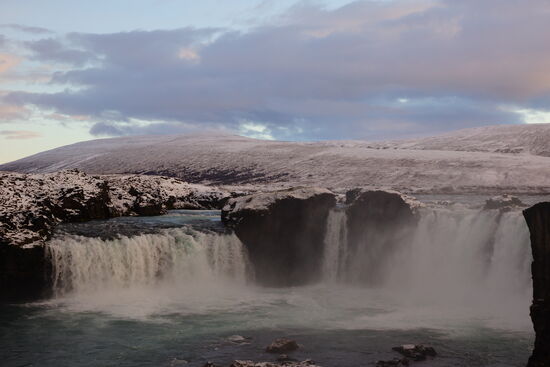 Nach dem whale watching ging es über den wundervollen Godafoss Wasserfall weiter Richtung Myvatn. Wir hatten das Glück, dass die Wolken noch aufgerissen sind und wir den Wasserfall bei Sonnenuntergang mit einem Hauch von Sonne sehen konnten. Je weiter nördlich man kommt, desto früher geht die Sonne unter, das macht hier einen deutlichen Unterschied. Beim Godafoss war der Sonnenuntergang bereits um ca. 18:30 Uhr was wir zuvor zum Glück recherchiert hatten.
