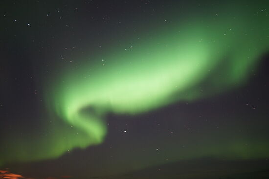 Am Abend hatten wir noch das große Glück unsere ersten Nordlichter zu sehen direkt am Hotel. Das war wirklich ein ganz toller Moment. Die Lichter waren auch mit bloßem Auge zu erkennen, allerdings eher als grauer Schleier. Für leuchtend grüne Nordlichter muss wohl die Aktivitätsstufe noch etwas höher liegen. Das Spektakel hat ca. 20 Minuten gedauert, bis die Nordlichter wieder verschwunden waren. Übrigens, das strahlende Grün der Nordlichter sieht man meist nur auf den Fotos mit Langzeitbelichtung. Je nach Aktivitätsstufe sieht man die Lichter mit bloßem Auge deutlich schwächer, also nicht enttäuscht sein. Videoaufnahmen gelingen bei Nordlichtern übrigens gar nicht, diese Mühe könnt ihr euch direkt sparen und stattdessen einfach den atemberaubenden Anblick dieses Naturspektakels genießen.