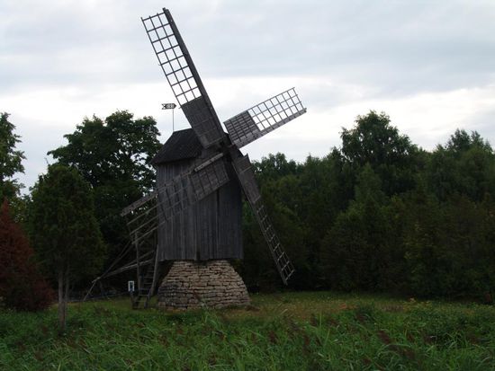 Im Jahre 1896 wurde ein 3,6 km langer Fahrdamm zwischen Muhu und der dahinter liegenden Insel Saaremaa errichtet, sodass seither die beiden Inseln miteinander verbunden sind. Etwa einen Kilometer vor dem Damm befindet sich beim Gehöft Emu die einzige noch tätige Bockwindmühle der Insel aus dem Jahr 1881. Leider ist die Mühle am Montag jeweils geschlossen, deshalb können wir sie nicht in Aktion sehen, schade!