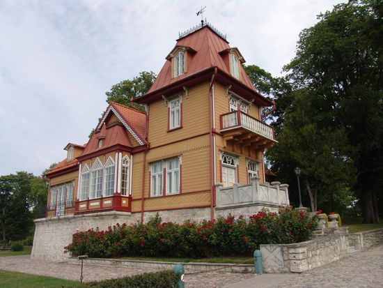 Bei schönstem Wetter können wir die 90 minütige Schifffahrt geniessen. Haapsalu ist ein Kurort etwa 100 km von Tallinn entfernt. Wegen der heilenden Wirkung der Schlammbäder besuchte auch die Zarenfamilie oft die Stadt. Da wir im Moment keine Lust auf Badekuren haben fahren wir weiter dem Meer entlang durch dichten Mischwald. Überall sind Vorsichtstafeln mit Elch darauf, welche die Strassen überqueren. Leider treffen wir auf kein solches Tier. In Elbiku in einer Ferienanlage stehen wir für die Nacht im dichten Wald (GPS N 59,09,29 E 23,31,12).