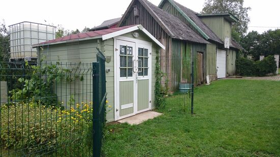 Mit dem unguten Gefühl, vielleicht besser zum Arzt zu gehen fahre ich weiter. Wieder geht es erst auf Radwegen und dann auf wenig befahrenen Straßen mit kleinem Seitenstreifen entlang. Der Tag könnte perfekt sein, wenn.... die Schmerzen nicht wären und es nicht wie aus Eimern schütten würde. So kann ich meine neue Regenausrüstung testen. Sie ist gut! In einem kleinen Dorf an der Bahnlinie finde ich eine Unterkunft in einer Grillhütte im Garten. Idyllisch! Zur Begrüßung lodert ein Feuer im Kamin. Nachdem in der Nacht die Schmerzen wiederkommen, entschließe ich mich, meinen Aufenthalt in der Grillhütte zu verlängern und mit dem Zug zurück nach Tallinn in eine HNO Klinik zu fahren. Die Vermieterin erkundigt sich für mich nach der richtigen Klinik. Estland ist ein gutes Land für gesundheitliche Probleme. Es gibt eine gute Gesundheitsversorgung und ich kann meine Krankenversicherungskarte benutzen. Es gibt nur eine kleine Zuzahlung. Die Untersuchung ergibt, dass ich keine Probleme im HNO Bereich habe. Es könnten die Zähne sein. Vielleicht ist ja jetzt auch alles wieder ok. Nach dem IBU habe ich keine Schmerzen mehr. Aber nachts kommen sie wieder. So bleibe ich noch einen Tag in Lelle, um am nächsten Tag zum Zahnarzt nach Rapla zu fahren. Meine Vermieterin macht den Termin für mich. Es ist auch kein Problem mit den Zähnen. Ganz gut! Aber was ist es? Ich vermute, dass ich mir beim Schlafen den Hals eingeklemmt habe. Massiere mir die Stelle, die schmerzt und tatsächlich am nächsten Tag ist der Schmerz weg. Es soll wieder regnen. So nutze ich am nächsten Tag die perfekte Zuginfrastruktur und fahre mit dem Zug nach Viljandi.