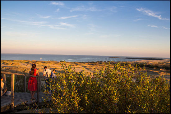 Hübsch zurechtgemachte junge Verlobte, kinderreiche Familien, Paare mit Hunden und Kinderwagen, Mutter-Sohn-Arrangements, individuelle Reisegrüppchen und Schulfreunde streben zielstrebig dem Sonnenuntergang auf der Düne an der Sonnenuhr entgegen. Fast jeder der oben den Gipfel über die Holzstiegen erreicht und eine Fotofunktion bei sich hat, schien haargenau die gleiche Abbildung festzuhalten, so dass ich ziemlich schnell verschämt meine Kamera wegpacke und einfach nur die Landschaft genießen will.