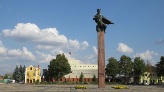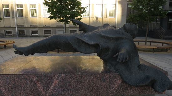 Wir fahren erst mal Richtung Osten bis Birzai, mitten ins Karstland Litauens und holen uns dort auf der Tourist Info Kartenmaterial. Der uns empfohlenen Stadtrundgang führt uns am Dichterdenkmal vorbei,