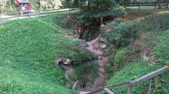 Die Burg ist heute am Montag geschlossen, also raus in die Natur, ins Karstland mit seinen gut 1.000 Dolinen, (engl. Sinkholes, lit. Ola). Regenwasser löst die Kalksteinfelsen im Boden langsam aber sicher auf, kleinere oder auch größeren Höhlen entstehen und wenn bei denen die Decke einbricht, so hat man eine Doline. Die bekannteste hier Karves Ola, die Kuh Doline