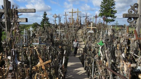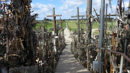 Ziel: Über Birzai und Rokiskis Richtung Osten in die Seenplatte von Narasai, nach Utena und Anyksciai mit dem höchsten Kirchturm von LT, über Panevezys und Pakruojis zum Hill of Crosses, wo mittlerweile gut 200.000 Kreuze zu bestaunen sind. Nach Telsiai, zum Cold War Museum, einer ehemaligen russ. Raketenstellung, weiter über Plunge, Palanga, Klaipeda, dem Nemunas Delta und einiger Schlösser am Wegesrand bis Kaunas.