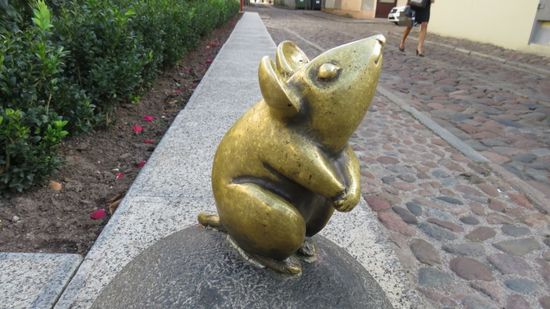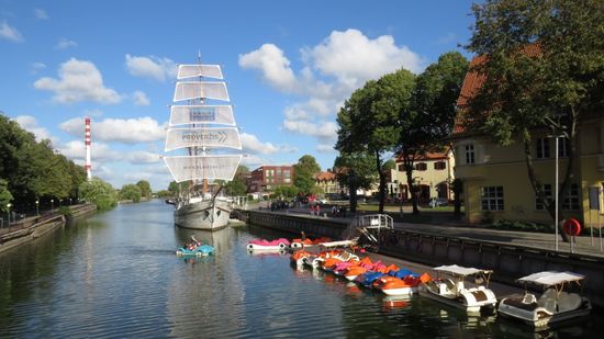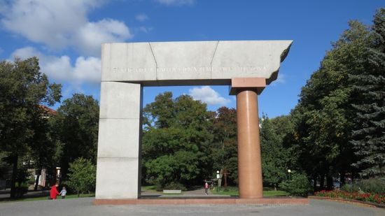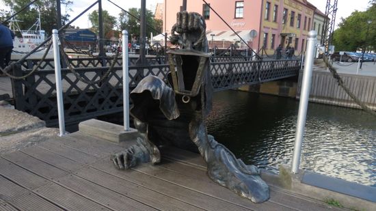 länglich geformte Kartoffelknödel mit einer lecker gewürzten Fleischfüllung und darauf noch eine Mischung aus gerösteten Zwiebeln und zerlassenem Speckstückchen; zwar jenseits jeder Diät, ultra kalorienreich, aber dafür sündhaft gut. In Klaipeda, dem Fährhafen zum Kurischen Haff, holen wir uns wie so oft erst mal in der Tourist Info das Kartenmaterial bevor wir die einzelnen Stationen des Stadtrundgangs absolvieren. Arka, dieser Bogen soll an die Vereinigung Litauens mit dem Memelland vor gut 85 Jahren erinnern,