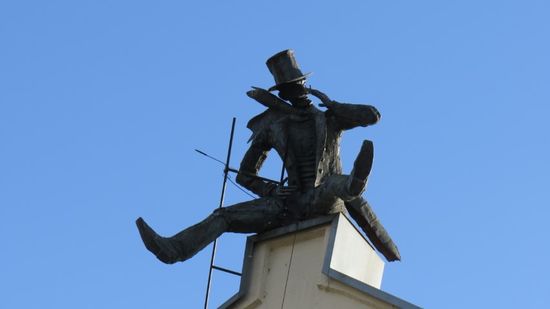 statt Tewje, dem Milchmann sitzt hier ein Kaminkehrer auf dem Dach