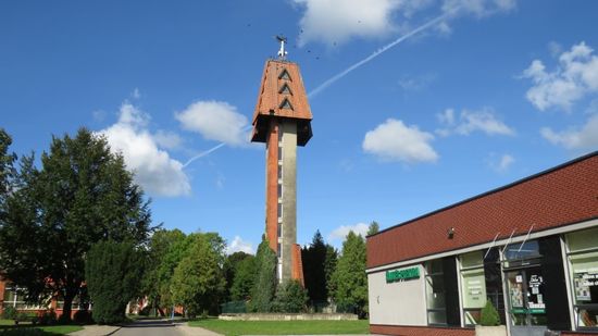 Entlang der Strasse dieses übergroße Vogelhaus – oder war das doch gar ein Wasserturm???