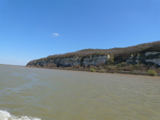 Rechts von uns stellt sich die Dobrudscha dem Fluss entgegen und verhindert, dass er einen direkten Lauf ins Schwarze Meer nimmt. Bei Cernavoda wird die Donau den Kampf dann endgültig verlieren und biegt rechtwinklig nach Norden ab. In Cernavoda ist die Donau dem Schwarzen Meer am nächsten. Deshalb wurde hier der Donau-Schwarzmeer-Kanal gegraben. Eine direkte Verbindung nach Konstanza.