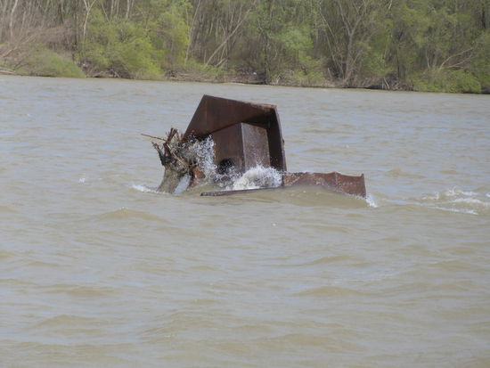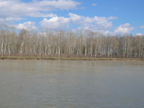Auf vielen der künstlich angelegten Au-Wälder sind die Pappeln abgestorben. Ganze Wälder sind kahl. Beim nächsten höheren Wasser werden die kranken Wurzeln die Stämme nicht mehr halten können und die Bäume werden als Treibgut im Fluss schwimmen. Es schwimmt sowieso sehr viel Unrat im Wasser. Manfred muss unheimlich aufpassen, trotzdem rumpelt es einige Male kräftig. Was unter Wasser so alles schwimmt, das sieht man leider nicht.