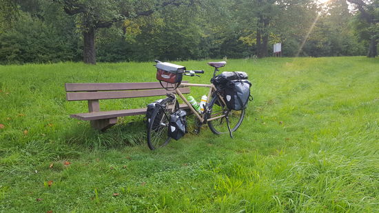 Gleich am zweiten Tag merke ich meine Beine, vermutlich wegen der 1.500 Höhenmeter am Tag zuvor. Aber sei es drum, vor dem Ulmer Münster genießen wir erstmal ein ausgedehntes Frühstück. Auf gut ausgebauten Deichwegen direkt am Donauufer können wir dann die Donau förmlich neben uns spüren. Kleine Landstraßen führen uns dann etwas weg vom Ufer und wir kreuzen landwirtschaftlich geprägte Dörfer, während die Sonne stetig auf uns brennt. Dank einer Umleitung müssen wir bei Dunkelheit nach 140 Kilometern noch zwei Hügel queren. Bei Dunkelheit bauen wir unser Zelt in Neuenburg auf. Schon am zweiten Tag setzt langsam eine Routine ein. Unsere nächsten Tage werden nun überwiegend aus Schlafen, Essen und Radfahren bestehen. Nebenbei saugen wir natürlich die Eindrücke, die sich uns bieten, so gut es geht auf. Die Alltagsgedanken werden weniger und weniger, mehr und mehr fühlen wir uns in der Gegenwart lebendig. Das gesamte Vorhaben ist nun “echt” und wir sind nun auch mental mittendrin.