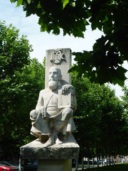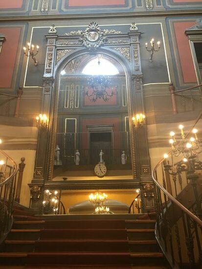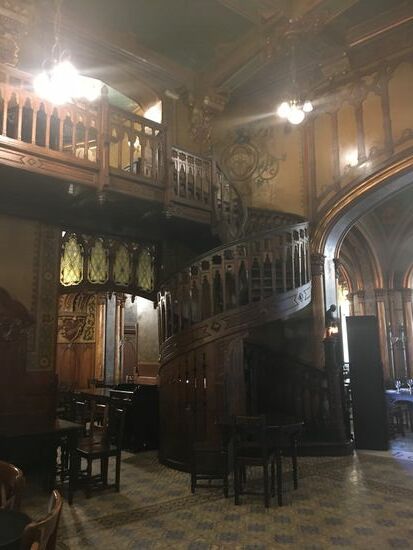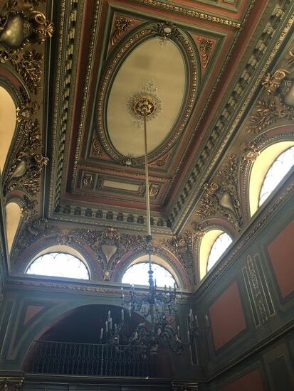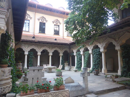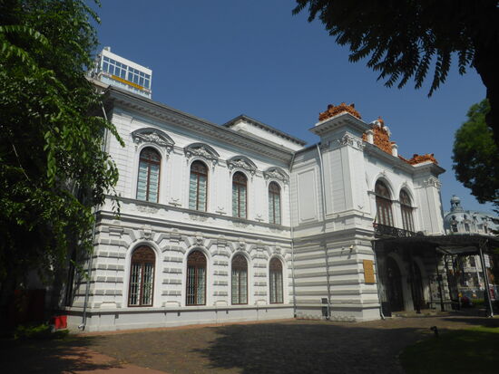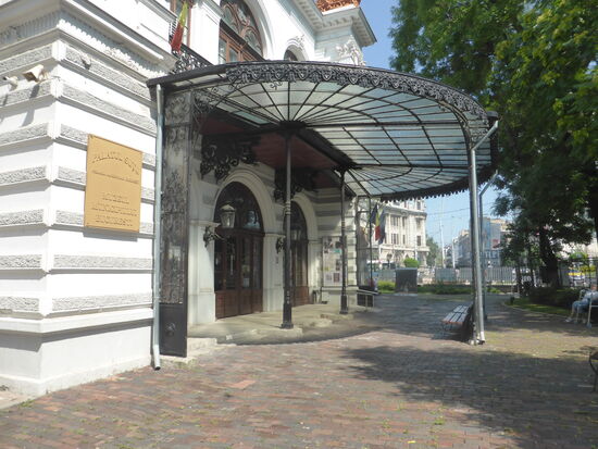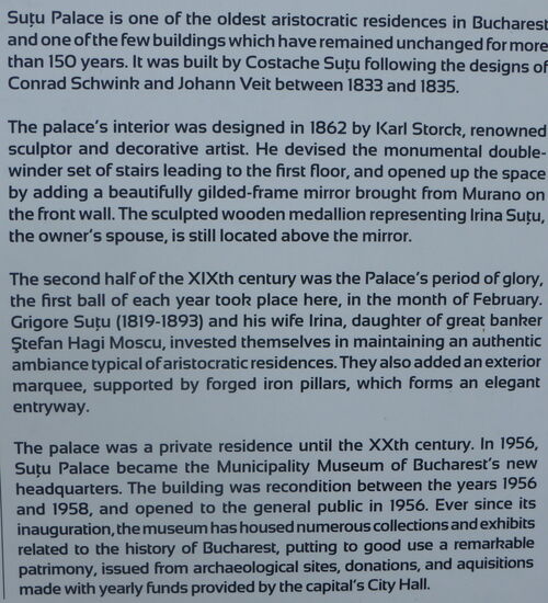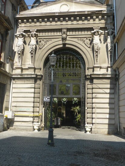 Wir bleiben jedoch auf der westlichen Seite und besuchen den Sutu-Palast aus der 1. Hälfte des 19. Jh. Es handelt sich um ein Bajoren-Haus, das ein Hofmarschall im neogotischen Stil erbauen ließ. Später wurde der Eingang mit einem kunstschmiedeeisernen Vordach im Jugendstil versehen. Das Haus war berühmt für seine Bälle.