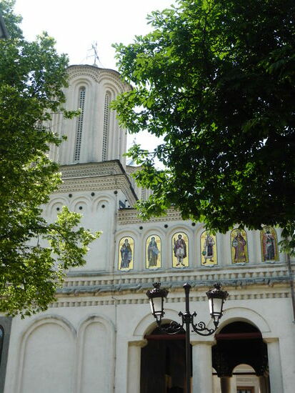 Der gesamte Bau ist in der unteren Zone von Arkaden und Blendarkaden umzogen, die aus Dreipässen bestehen, wovon der mittlere die Form eines Kielbogens hat. Über dem plastisch geschmückten Gesims folgt ein gemalter Medaillonfries. Diese Außenmalerei unterscheidet das Gebäude von anderen Bukarester Kirchen.