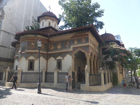 Die Stavropoleos-Kirche ist ein besonderes Juwel im Viertel von Alt-Bukarest. Der griechische Mönch und spätere Metropolit von Stavropolis, Joanikie, ließ sie um 1730 als Kapelle eines Gasthofes erbauen. Aus der schlichten Saalkirche wurde später ein prächtiges Beispiel des Brancoveanu-Stils. Der Aufbau als Dreikonchentypus war im 18. Jh. typisch für die Walachei. Die offene Vorhalle wird von schlanken Säulen getragen.