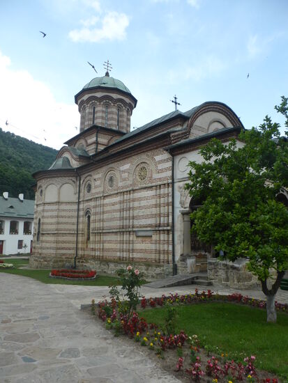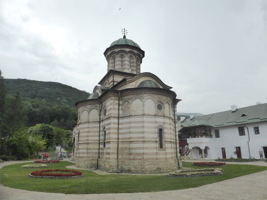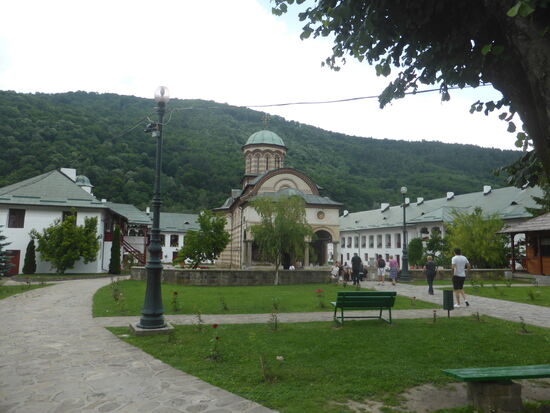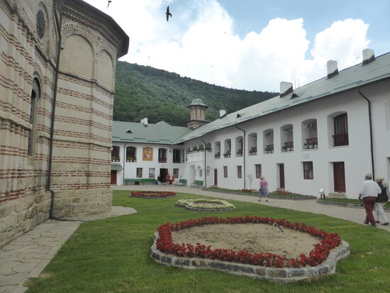Schon gestern habe ich versucht herauszufinden, wo das Kloster Cozia liegt. Vergeblich. Nun wird auf der Fahrt klar, dass wir in einem Tal die Grenze von Siebenbürgen zur Walachei überschreiten. Kurz dahinter ist dann das Kloster in einem Ort namens Călimănești zu finden (45,271405 N / 24,315202 O)