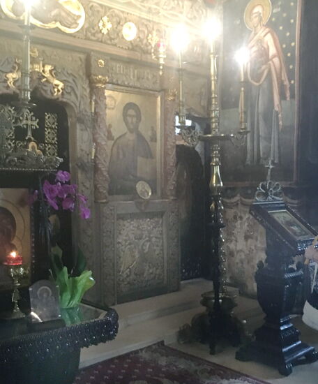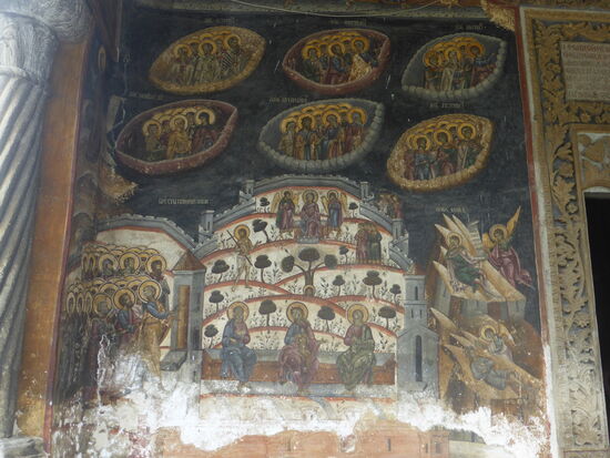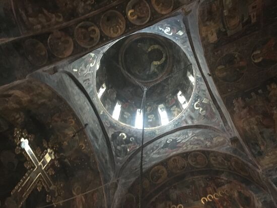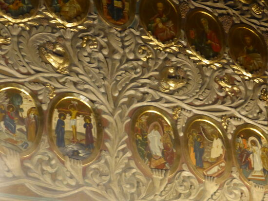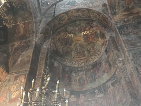 Wir haben mal wieder Glück; der Regen hat aufgehört und beginnt erst wieder als wir die Besichtigung beendet haben. Auch hier erhalten wir noch einmal ausreichend Zeit um sowohl die beeindruckende Kirche mit unterschiedlichen Mauerwerkschichten zu sehen als auch noch einen Rundgang durch das kleine Museum zu machen, in dem zahlreiche Ikonen und Glasfenster zu bewundern sind.