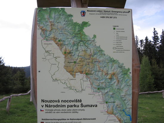 Geplant haben wir nichts und angemeldet sind wir auch nirgends, wir wollen doch die grenzenlose Freiheit genießen. Also suchen wir auf unserer Karte, - aber aus der ziehen wir nur weitere Wandervorschläge oder Mountainbikerouten. So rollen wir weit abwärts erst einmal bis zu einer Straße mit Autoverkehr, der Sumava Magistrala, die wir in Nova Hurka