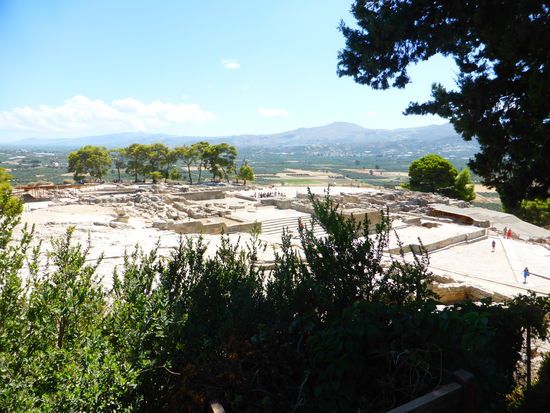 Festos liegt wunderschön auf einer Anhöhe, die die Messara-Ebene um etwa 70 m überragt. Man hat einen herrlichen Rundblick über die Ebene im Süden und hinauf zum Doppelgipfel des Idagebirges, der auf Kreta heute Psiloritis genannt wird.