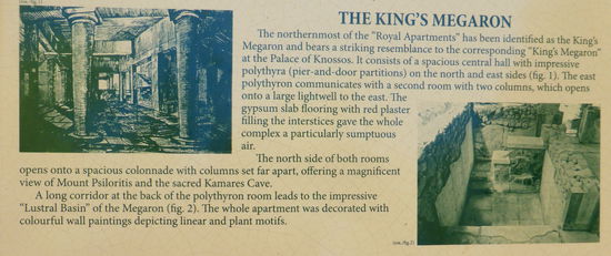 Megaron der Königin, ein kleinerer Saal mit einer Sitzbank aus Gips, vier Säulen, gepflastertem Fußboden und einem Lichthof in der Mitte.