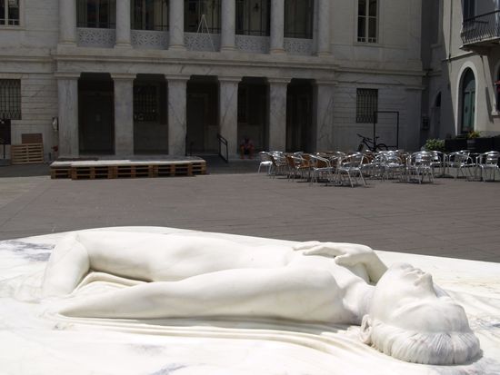 Der Neptunbrunnen vor der Chiesa Sant'Andrea. Er blieb unvollendet, weil sich der Künstler vorher aus dem (Marmor)staub gemacht hat.