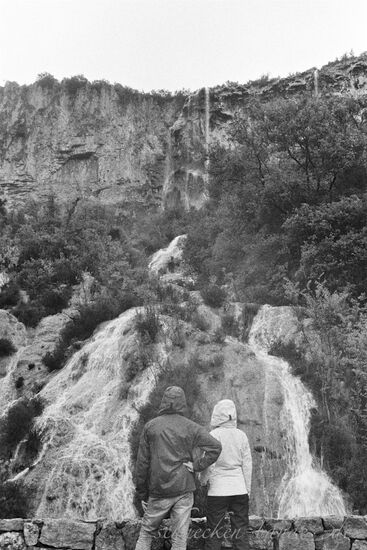 Wir haben es ja fast schon geahnt. Uns weckte ein sehr zorniger Polizist. Er werkelte an unserem Zelt und schimpfte. Irgendwann kroch Bernhard die Leiter runter. Er wollte 50,00 €. Wir weigerten uns lange diese zu bezahlen und diskutierten. Erzählten ihm, dass uns gestern ein Campingplatz gar nicht mehr reingelassen hätte, was auch wirklich stimmte. Aber das war ihm alles egal und nörgelte weiter. Immer wieder schrie er Bernhard an, dass er italienisch reden sollte. Wir sind zwar am Lernen, aber so gut beherrschen wir die Sprache leider auch noch nicht. Da wir zumindest einen ordentlichen Strafzettel haben wollten, war er noch mehr verärgert. Ansonsten wäre das Geld wahrscheinlich in seine eigene Tasche gewandert. Wir konnten bald wieder lachen. So gesehen hatten wir bisher eh immer Glück. Lustigerweise hörten wir plötzlich Menschen, die uns als Schneckenbande vom Internet kannten. Ein Regensburger Pärchen blieb extra stehen um uns Hallo zu sagen. Entschuldigt, dass wir noch ein wenig neben der Spur aufgrund des Vorfalls in der Früh waren! Wegen der anhaltenden schlechten Wetterlage saßen wir uns in eine Bar im Ort Baunei und planten unsere Route. Das Wasserdorf Sadali in der Barbagia Seulo reizte uns schon immer sehr. Die kurvenreiche Fahrt dorthin zog sich eine Weile. Graue Wolken hangen in den Bergen. Wir kamen durch Gairo Vecchio. Es wurde durch einen Erdrutsch zu einem Geisterdorf, welches wir aber aufgrund des Niederschlags heute nicht genauer besichtigten. Nächster Halt war der größte Wasserfall Sardiniens Cascate di Lequarci in Ulassai. Abends erreichten wir endlich das hübsche kleine Dorf mit rund 1000 Einwohnern mitten im Gennargentu Gebirge. Auf Sardinien ist Sadali der Ort mit den meisten Quellen. Er liegt auf einer Hochebene, wo etwa 60 – 80 Prozent der jährlichen Regenmenge im Gestein gespeichert und kontinuierlich abgegeben wird. Wirklich überall hört uns sieht man Wasser plätschern. Es fließt unter den Häusern, durch die Wände und in den Bächen. Der Wasserfall Cascata di San Valentino liegt sogar im Zentrum. Im Moment wirkte alles sehr verlassen. In der Bar Pizzeria Da Corrado fragten wir nach, ob es irgendwo etwas zum Essen gibt. Daraufhin griff der Besitzer zum Telefon und rief tatsächlich seine Frau an, welche dann kam und uns etwas kochte. Die Sarden sind halt wirklich so nett. Nachdem wir unseren Hunger gestillt haben, wurde uns das nochmal richtig bewusst. Drei junge Burschen und ein pensionierter Polizist luden uns immer wieder auf Getränke ein. Zusammen amüsierten wir uns köstlich bis spät in die Nacht. Die Jungs sind anständig und nüchtern geblieben, da sie am nächsten Tag arbeiten mussten. “Pul“ der alte Mann hingegen brachte uns alle herzhaft zu lachen und war auch schon angeheitert. „Ahhuuuuu“, schrie er immer. Wir waren ihm sympathisch. Es ist echt der Wahnsinn, wie viel Spaß wir hatten, obwohl unser Italienisch noch nicht gut ist. Die wundervollen Menschen sagten, dass wir uns einfach auf die Piazza im Ort stellen können. So war dies unser heutiger Nachtplatz. Auch im Dachzelt hatten wir zu zweit noch viel gelacht. Bei dem Wetter war es ja auch kein Wunder, dass uns der Wein und das Bier so schmeckte.