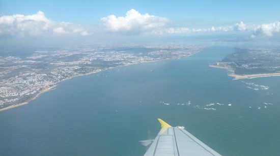 Wie bei unseren bisherigen 'Billigflügen' starten wir pünktlich. Der Flug ist etwas rauh da wir einem starken Golfstrom entgegenfliegen. Aber entgegen der Ankündigung des Kapitäns scheint über Lissabon die Sonne.