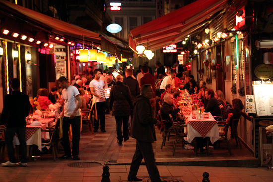 Nachdem ich Axel schon mehrfach und auch hier wieder darauf aufmerksam gemacht habe, dass man in Gebieten wir hier mit vielen Touristen um die Restaurants am besten einen großen Bogen macht und verstoße jetzt prompt gegen meine eigenen Regeln. Wir kommen nämlich an einem toll aussehenden "Puddingladen" wie ich sie immer nenne vorbei. Eine Art Kaffee in dem in erster Linie Süßes (vor allem Lokum, die türkische Süßigkeit schlechthin) und eben Puddings serviert werden. Das Kaffee sieht so gut aus, dass wir trotzdem rein gehen. Ein Tee kostet hier mindestens vier mal so viel wie in anderen Kaffees, aber die rund 7 TL für einen Pudding scheinen reell und der Pudding ist wieder extrem lecker. Nach zwei Mahlzeiten während unserem Flug reicht uns das als Abendessen. Dafür Beschließen wir den Abend mit einem Besuch in einem Starbucks in der Divanyolu Cad. Mit der Entdeckung ist unsere Kaffeeversorgung hier auch gesichert.